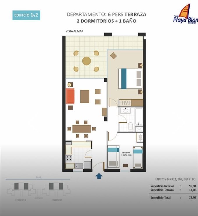 Todos los departamentos tienen vista al mar y acceso directo a la Playa.
