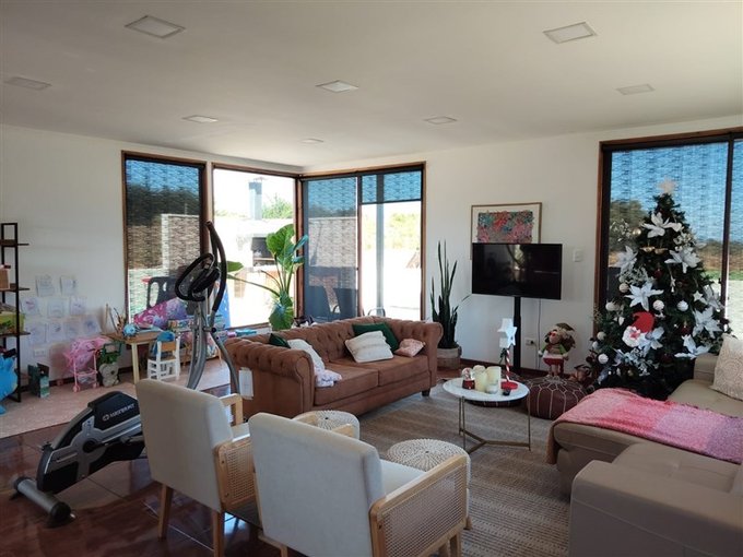 No puedes dejar pasar esta oportunidad de vivir en un hermoso chalet en el exclusivo Condominio Santa Maria de Algarrobo! Esta espaciosa casa cuenta con 4 dormitorios y 5 baños, perfecta para una familia que busca comodidad y tranquilidad. Con 5000 m2 de terreno y 220 m2 totales, tendrás todo el espacio que necesitas para disfrutar al aire libre.