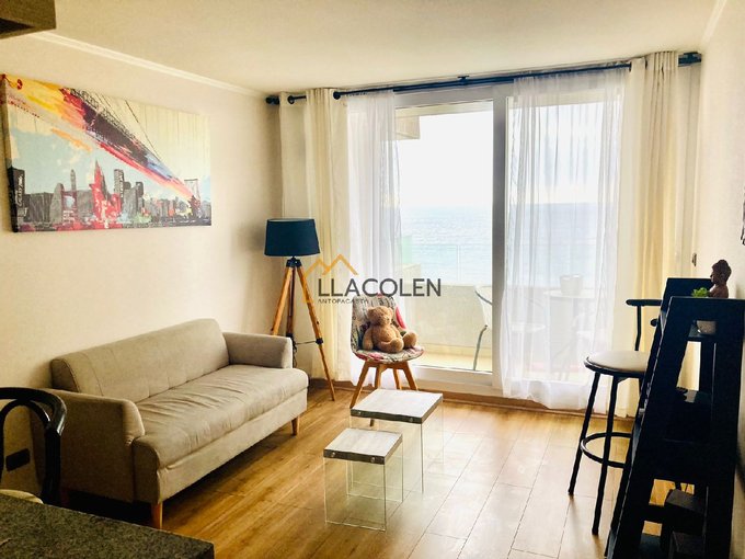Vive (o arrienda a tu equipo) en un departamento full amoblado de 60 m2, consta de 2 dormitorios, 2 baños, estacionamiento y bodega, lleno de luz natural, con un diseño moderno y cálido que invita a descansar después de la jornada. El living destaca por su estilo acogedor, detalles decorativos y un gran ventanal que enmarca una vista directa al mar que enamora.