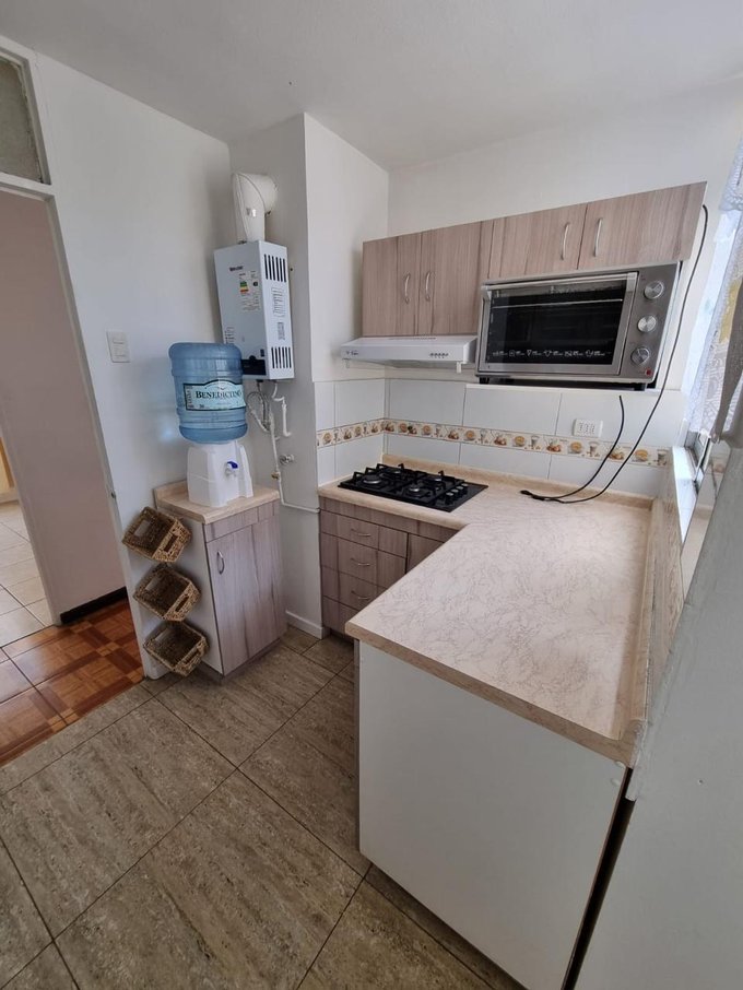 cocina amoblada y recién remodelada, incluye cocina encimera y campana extractora
