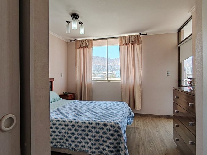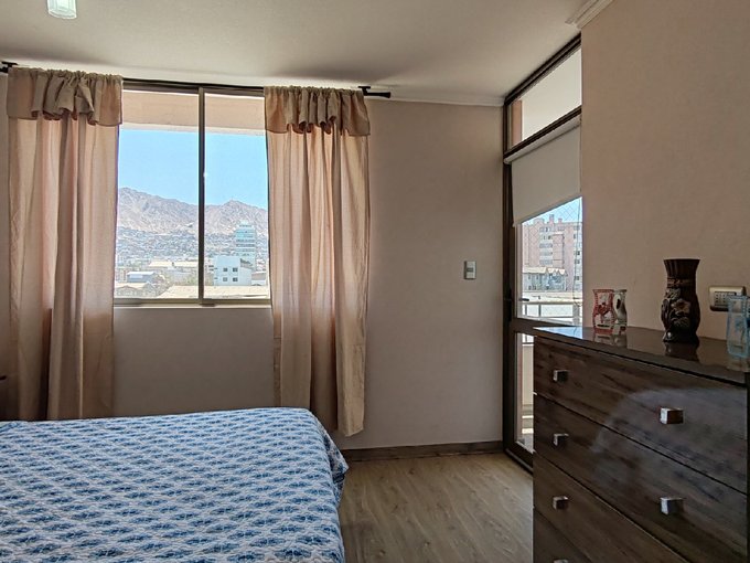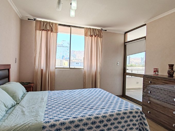 Lindo departamento amoblado en piso 6, ideal para quienes buscan comodidad y ubicación. A solo una cuadra del Parque Brasil, el pulmón verde más importante de Antofagasta . Cuenta con 1 dormitorio y 1 baño completo .