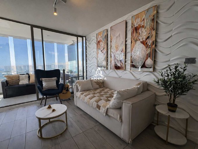 Moderno y sofisticado departamento de 2 dormitorios y 2 baños, completamente amoblado y decorado en estilo ejecutivo/lujoso. Ideal para profesionales o quienes buscan confort, diseño y una vista privilegiada.