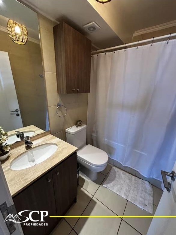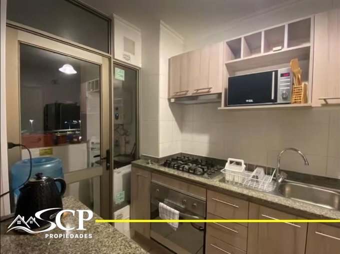 SCP PROPIEDADES arrienda hermoso departamento para EXPONOR, cuenta con dos dormitorios (el principal tiene cama King y el otro dormitorio tiene una cama de plaza y media), y en la sala de estar un futón, un baño, logia con lavadora y tendedero, cocina con todo lo necesario para prepararse los alimentos. Se entrega listo para ser ocupado con ropa de cama y toallas. Además, cuenta con un amplio estacionamiento.