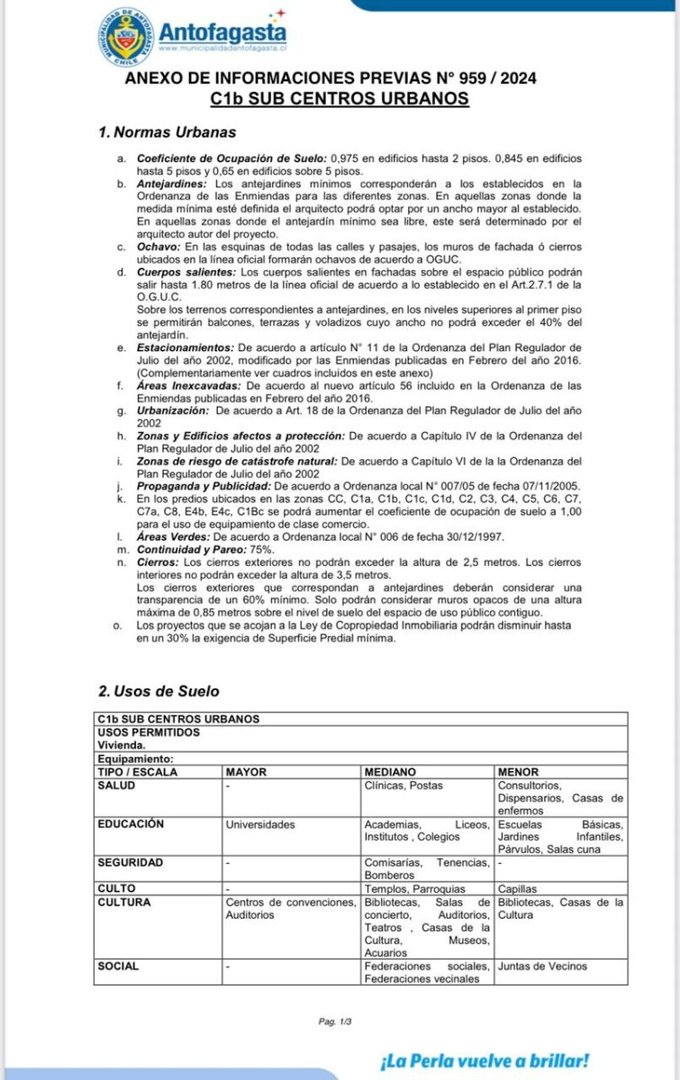 Se arrienda terreno ubicado en Av. Pedro Aguirre Cerda sector norte de la ciudad de Antofagasta. El terreno esta apto para uso de equipamiento, comercial, acopio, talleres y bodegas inofensivas. Preferentemente construcción en altura.