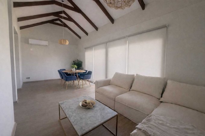 . Sala de estar y comedor luminosa con vistas al jardín