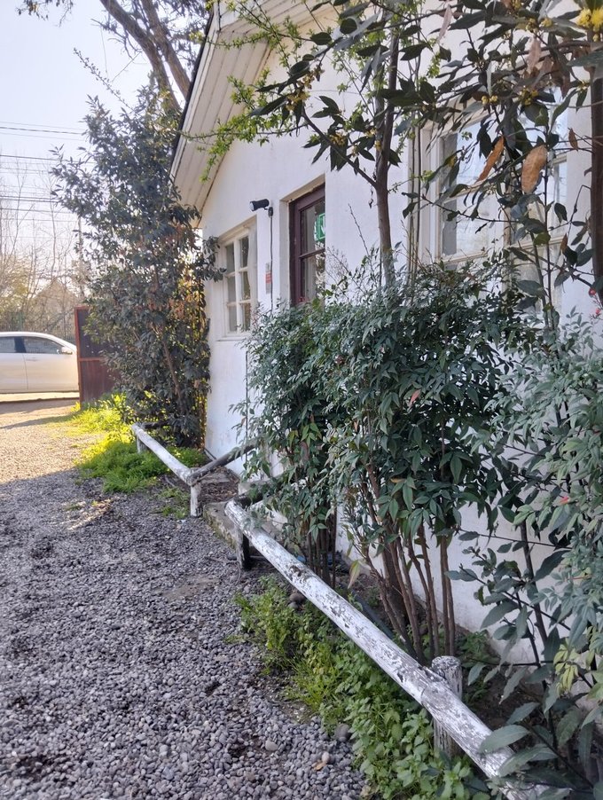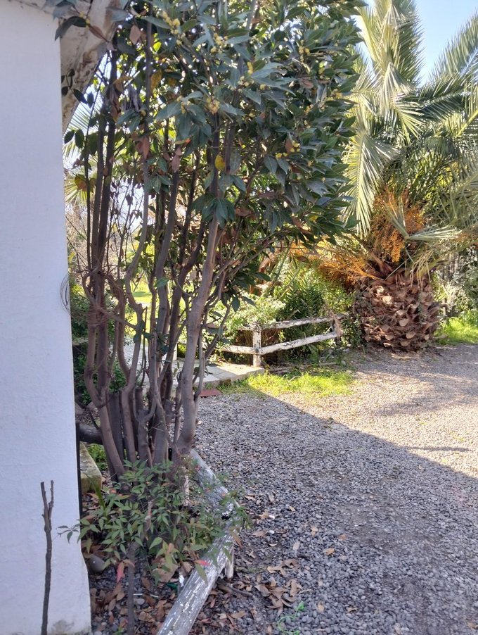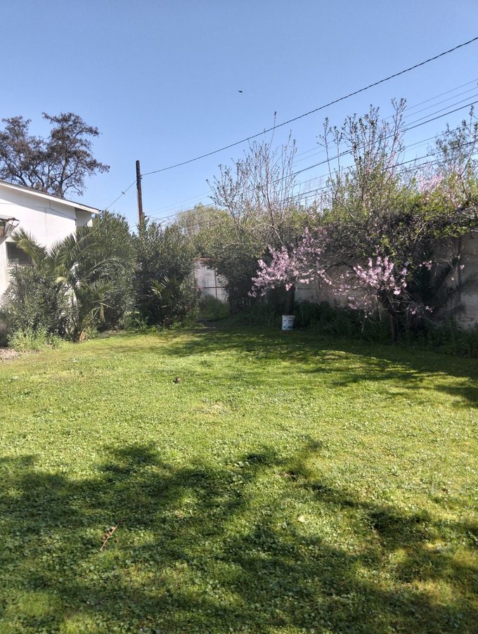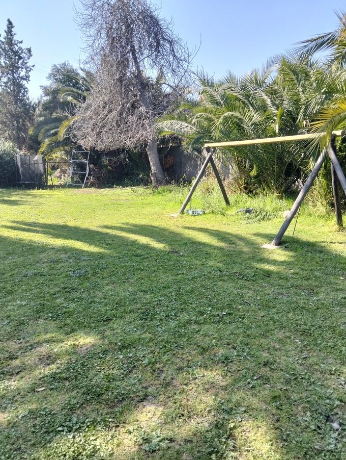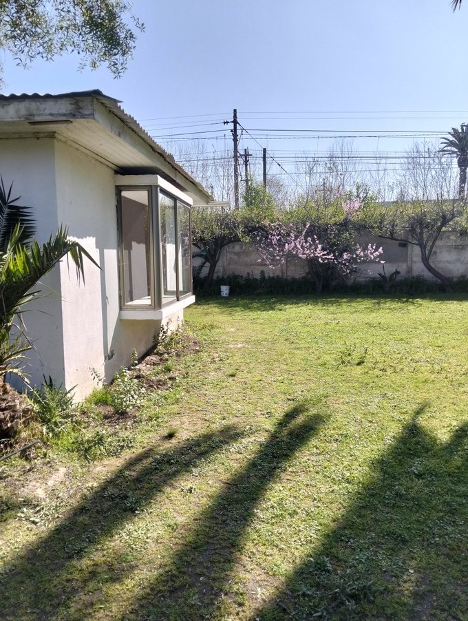 Terreno de 2050 mts2. Jardín formado, terraza y patio con césped. Hay espacio para estacionar muchos vehículos. Bodega de 30 mts2 + canil.