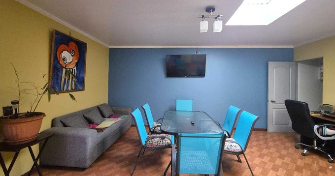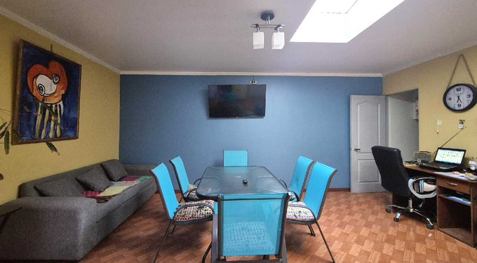 En el primer piso cuenta con amplio living-comedor en ambiente integrado, equipado con sofá, comedor y televisión, generando un espacio cómodo y práctico para el uso diario. En la parte posterior dispone de una sala multiuso independiente, acondicionada con sofá, mesa amplia, televisión y área de trabajo con escritorio, ideal como sala de reuniones, espacio común o área de descanso para el equipo.