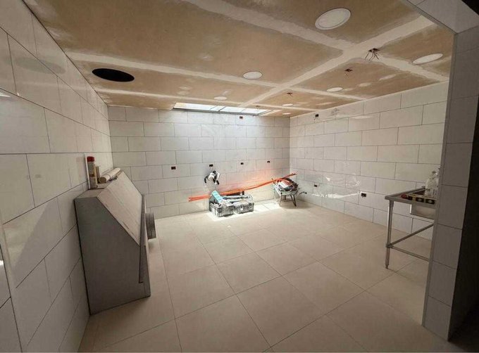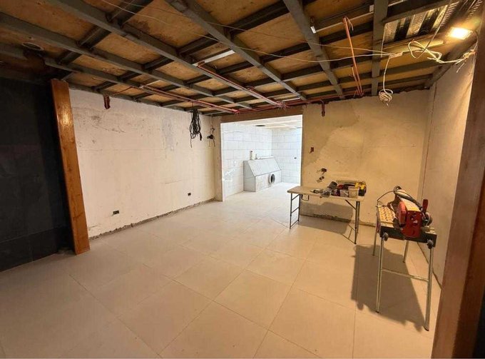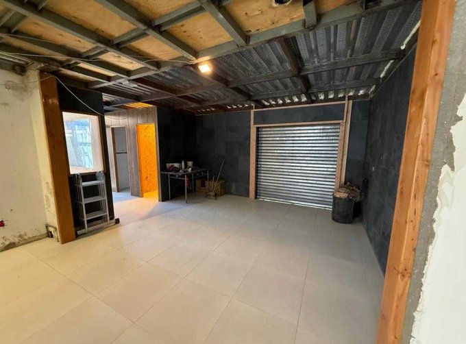 Dos ambientes unidos, uno de ellos revestido en cerámica.