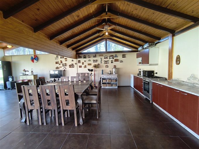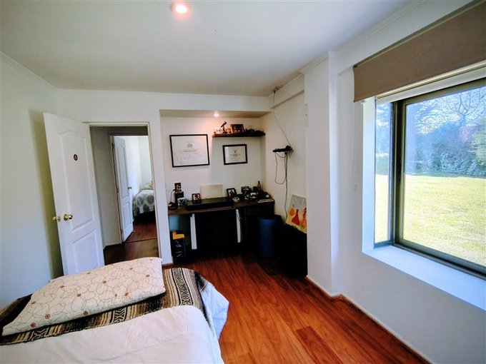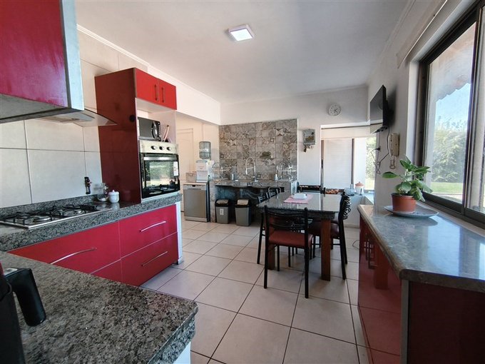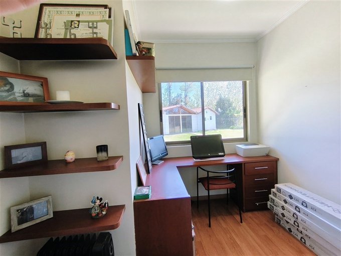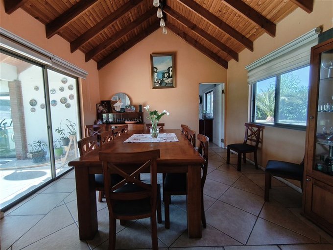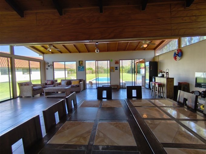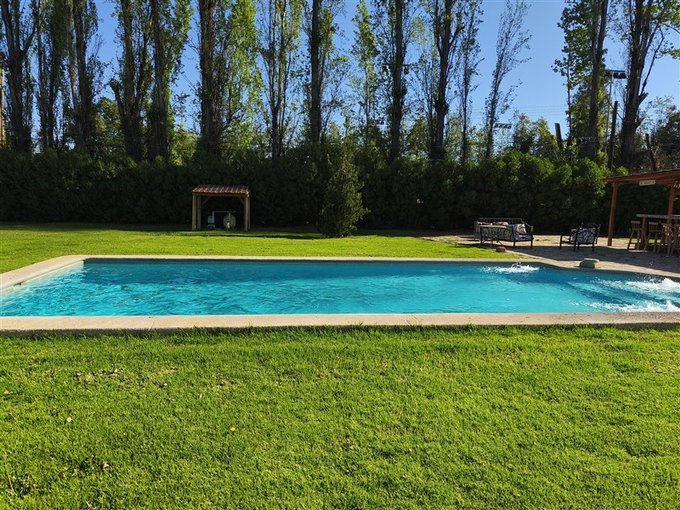 En el exterior, un *hermoso jardín formado* rodea una *piscina con vista panorámica privilegiada, además de un **quincho completamente equipado* con baño, cocina y amplio salón para disfrutar con familia y amigos. El terreno también dispone de un *gran canil, **portón de acceso automatizado, y una **amplia entrada que rodea una pileta central, con espacio para estacionar cómodamente **5 a 6 vehículos*.