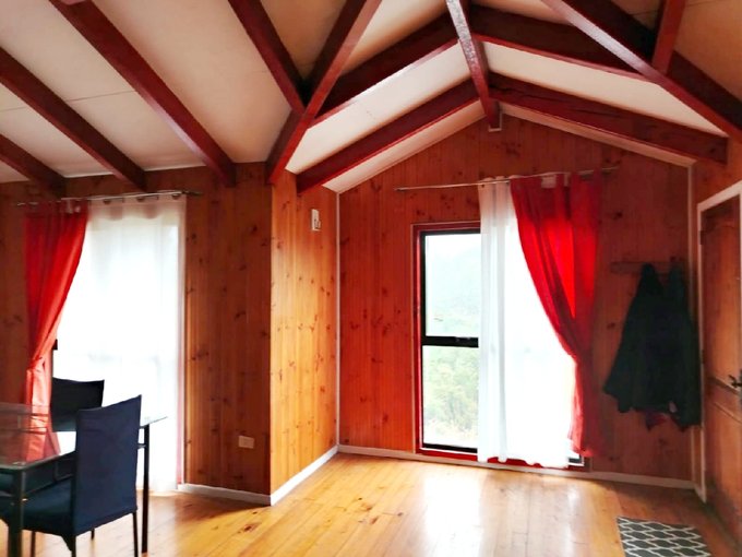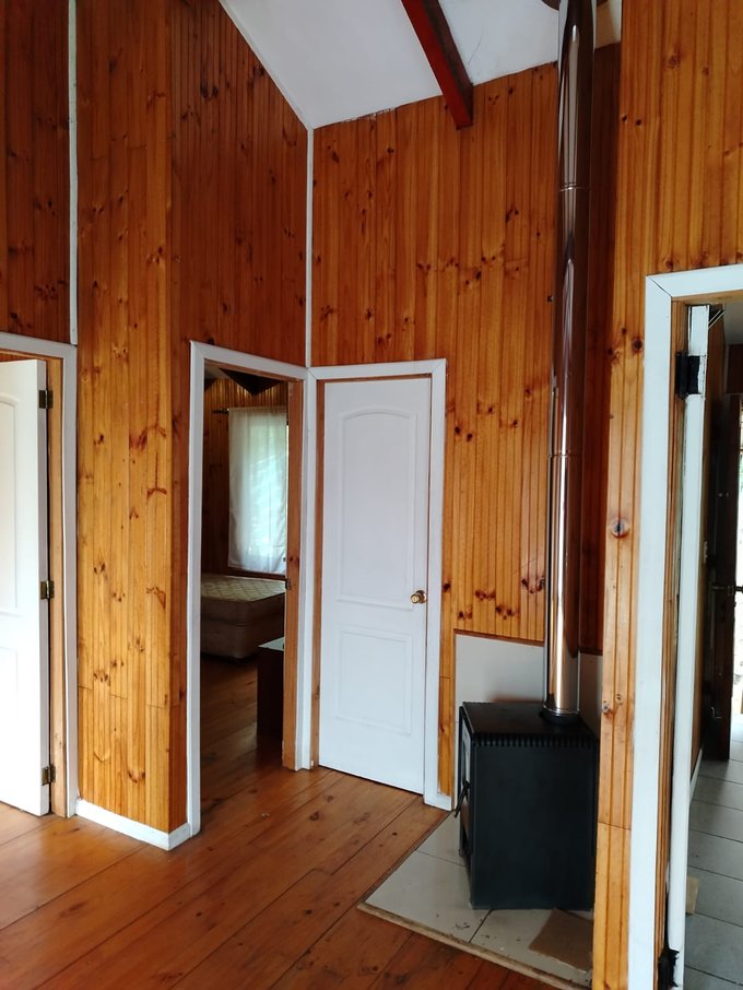 Cabaña de dos dormitorios , un baño, living comedor amplio y cocina independiente, cerca del Colegio Carpe Diem, entorno tranquilo.