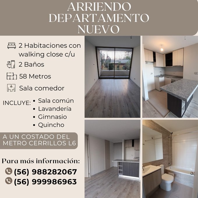 Departamento Nuevo céntrico, a un costado del metro Cerrillos L6.