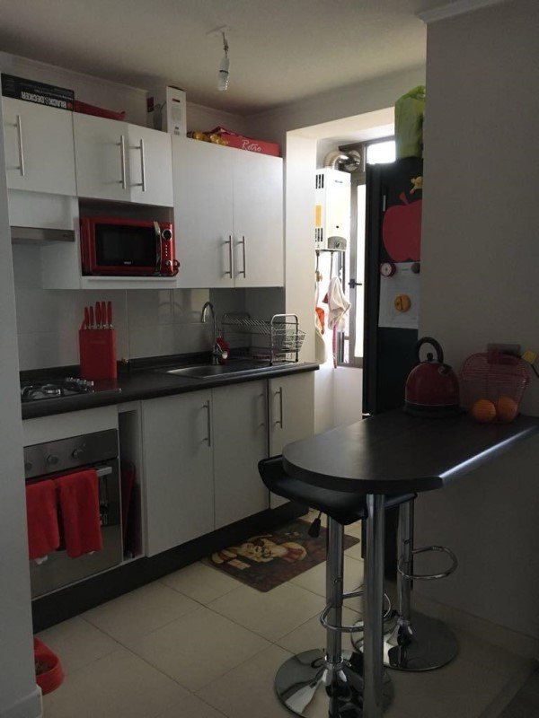El departamento cuenta con cocina amoblada y equipada (cocina, horno, campana y calefont automático), se ubica en el segundo piso, con orientación al norte, cuenta con estacionamiento.