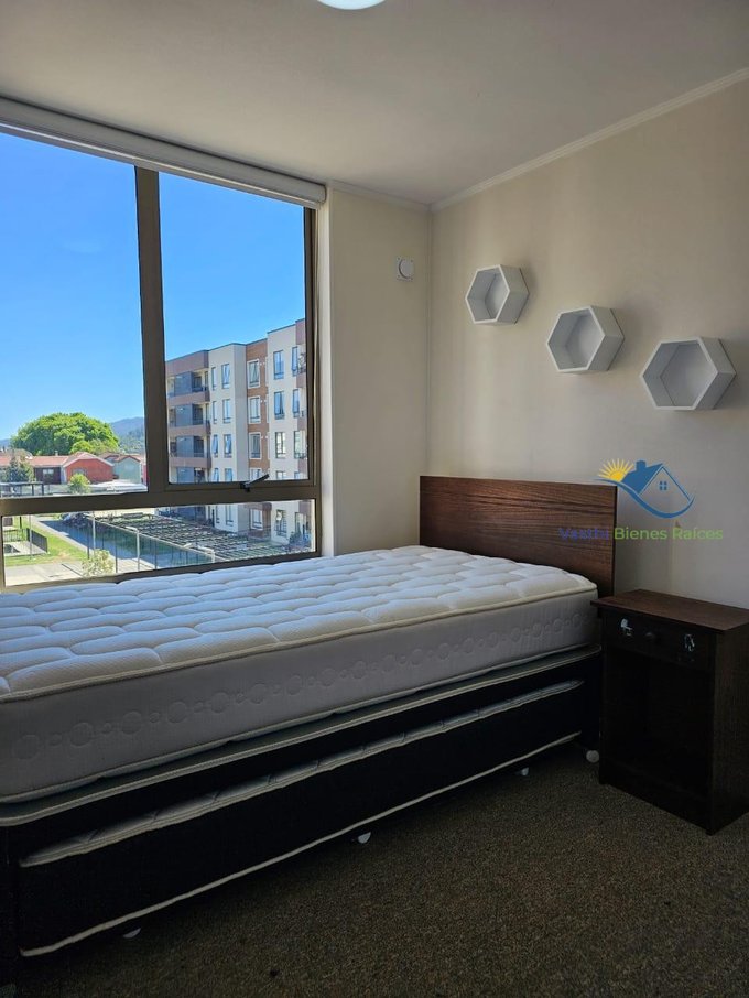 Departamento amplio, GGCC incluidos,condominio familiar,ubicado en una de las mejores comunas para vivir,cerca del Easy de Chiguayante, Supermercado Lider, Banco Estado, Cesfam Pinares,a media cuadra de la avenida Manuel Rodríguez, por donde pasa variada locomoción para toda la intercomuna, Supermercado Unimarc frente al condominio, farmacias, ferreterías, pizzerías y clínicas veterinarias, todo a la mano, restaurantes, centros médicos, amasanderías y feria libre, colegios, parroquia, etc. Una calle de Carabineros. En piso 3 sin ascensor,cocina amoblada,encimera a gas de 4 platos,Campana,Horno eléctrico, Cubierta de granito en mueble base, además muebles colgantes empotrados, conexión para lavadora, Balcón donde está el cálifon a resguardo, el departamento recibe sol todo el día, con vista al interior del condominio, donde se aprecia el patio central, los juegos infantiles, la piscina, el club house, bicicleteros y los quinchos, cuenta con conserjería 24/7 todos los días del año, con estacionamiento designado.Dos baños con tina, uno con ventilación natural,Tres dormitorios con closet, dormitorio principal con baño suite y walking closet. Se entrega con cortinas roller en todos los ventanales, espejos decorativos en ambos baños,soportes para tv, Plafones en todas sus ampolletas.Acceso vehicular controlado, circuito de vigilancia en todo el perímetro. El arriendo incluye su estacionamiento.