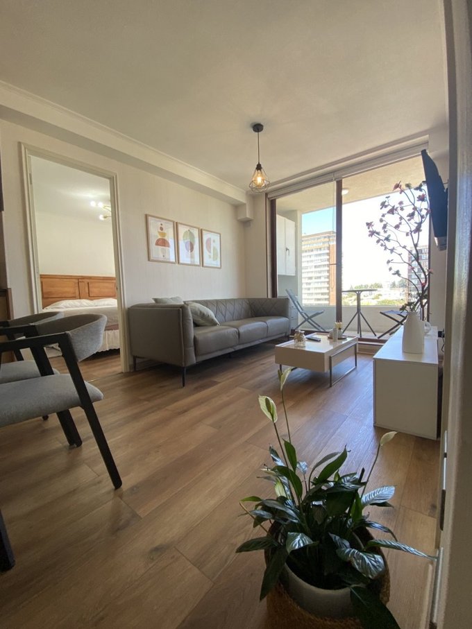 Se arrienda cómodo y moderno departamento completamente equipado, ubicado en el centro de Chillán, a tan solo 4 cuadras de la Plaza de Armas, con excelente conectividad y cercanía a todo tipo de servicios.
