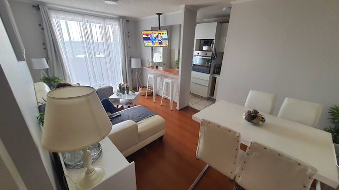 Atención empresas! Se arrienda moderno departamento amoblado en Avenida Brasil, ofrece todo lo que necesitas para vivir cómodamente en él, solo tienes que traer tu ropa. Con 3 amplios dormitorios y 2 baños bien equipados, este espacio es perfecto para familias o profesionales que buscan un espacio funcional y elegante. Disfruta de momentos de relajación en tu terraza privada de 4 metros, ideal para disfrutar del aire libre y las vistas de la ciudad.