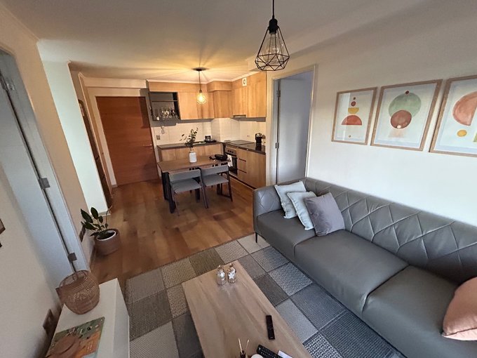 Con 58 metros construidos, te ofrece un ambiente acogedor y funcional, complementado por una terraza de 3 metros donde podrás relajarte y disfrutar de una vista encantadora. Ubicado en un edificio exclusivo de 12 pisos, tendrás la privacidad y tranquilidad que buscas, todo por solo CLP730,000 más gastos comunes de $70.000.