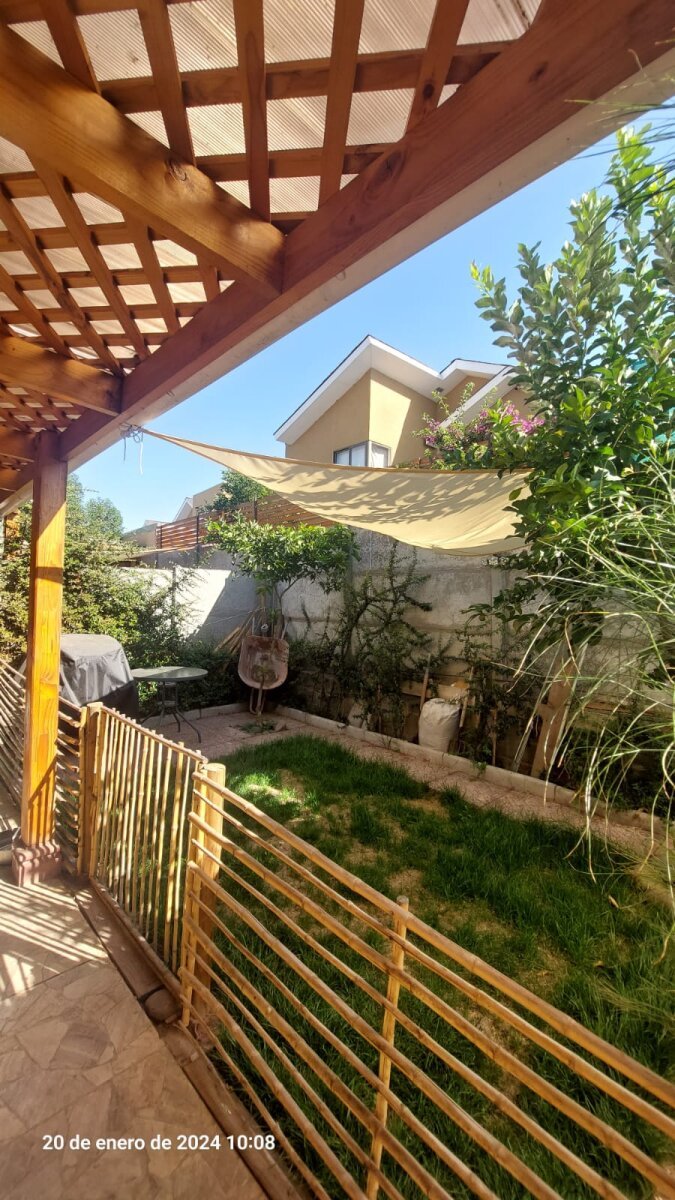 Detalles: terraza techada, jardín, portón, estacionamiento techado, cámaras de seguridad.