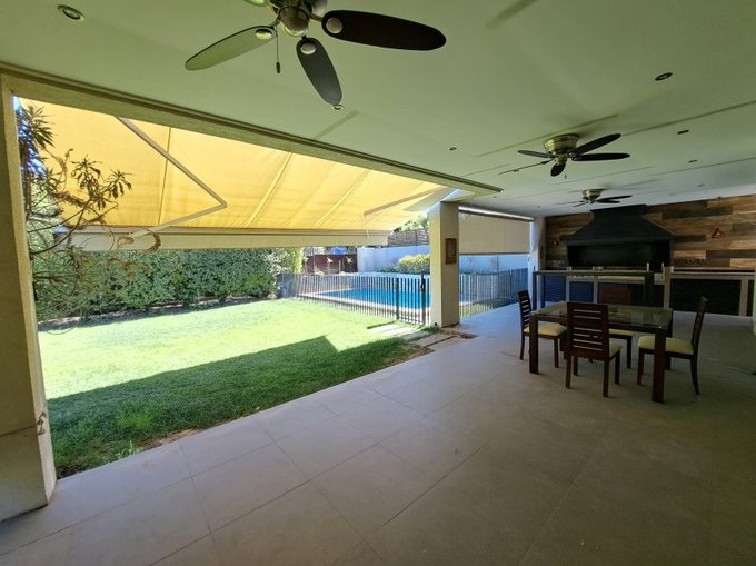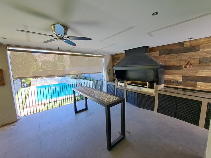 Terraza techada con toldo retráctil + quincho completo + Piscina.