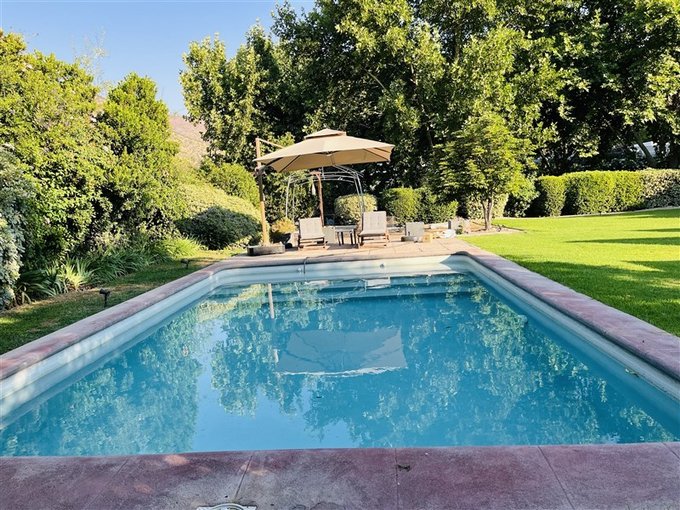 Gran Jardín con piscina , terraza y quincho.