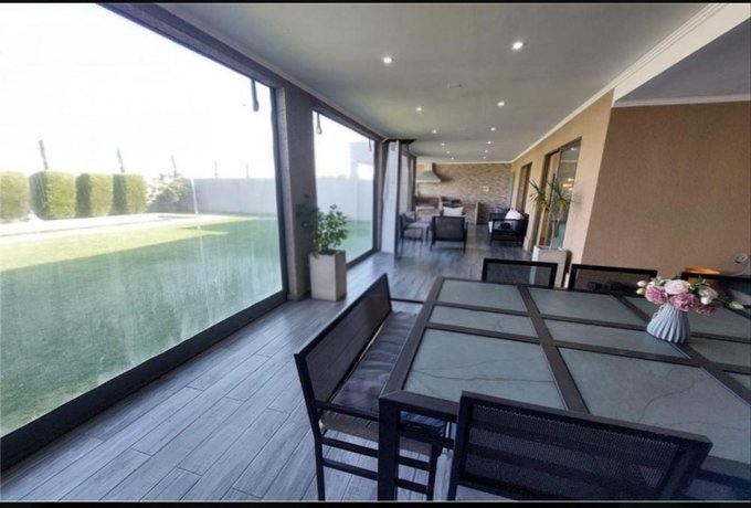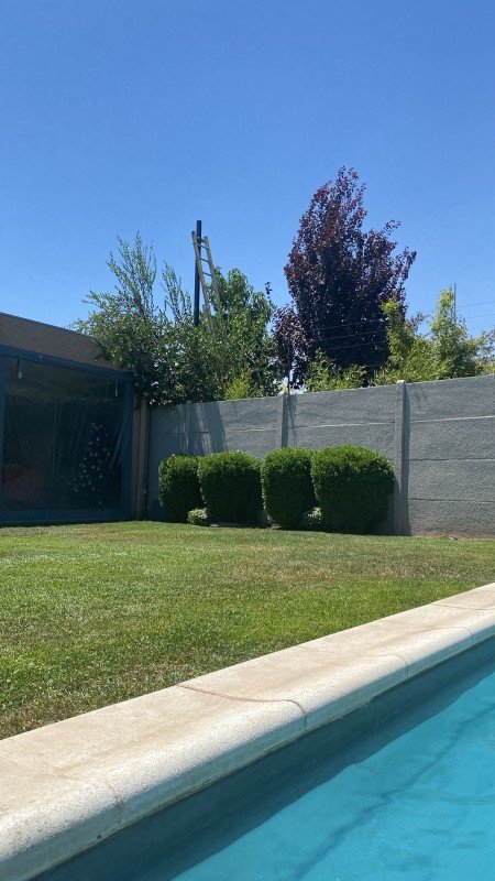 El patio con jardín formado, riego automático. piscina y quincho. Cerco eléctrico y cámaras de seguridad.