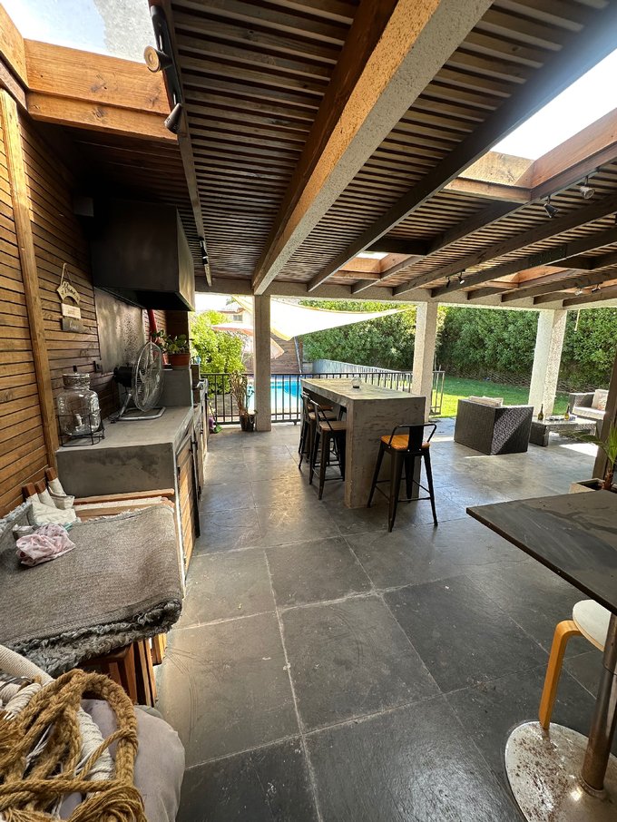 Hermoso jardin formado con riego automatico, amplia terraza techada con luz natural, quincho completamente equipado con isla, piscina con proteccion .