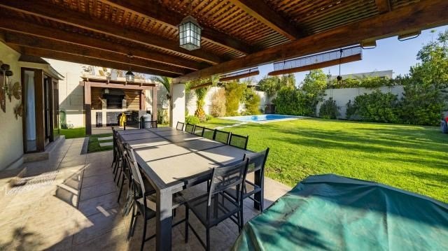 La casa esta en impecables condiciones, cuenta con piscina, terraza techada, amplio jardín, parrilla. En el primer piso esta el dormitorio principal en suite, un agradable escritorio para Teletrabajo, baño de visita, living comedor cocina, dormitorio de servicio. En el segundo piso hay un amplio estar familiar, dos dormitorios y un baño.
