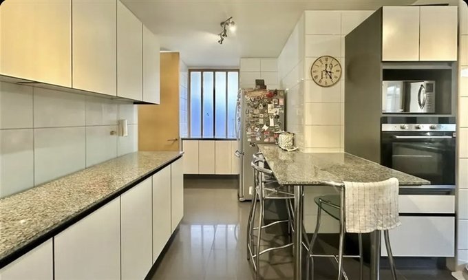 Ventanas termopanel, cubiertas de granito en cocina, piso flotante en recibos y dormitorios. Calefacción central por radiadores.