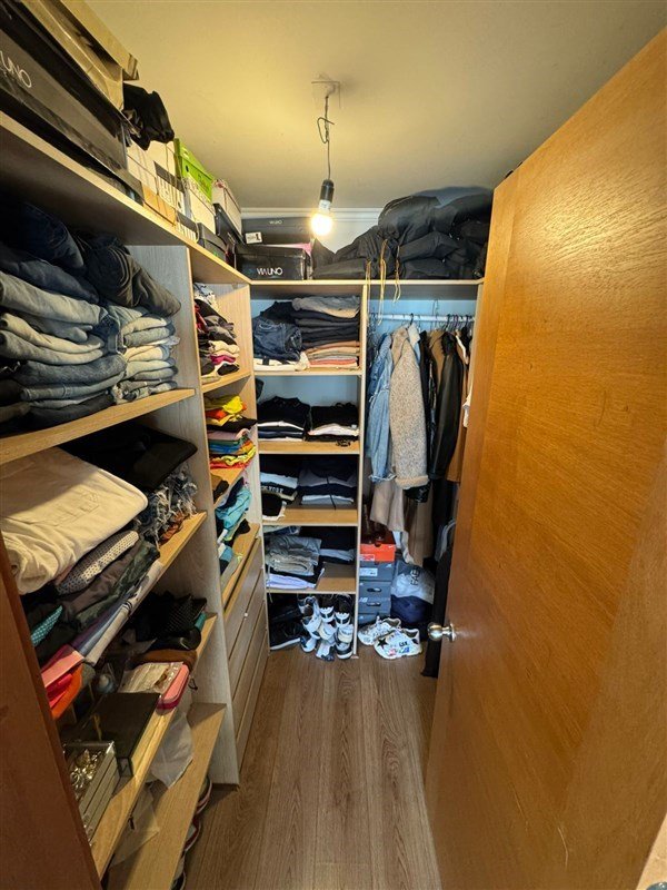 dormitorio principal en suite con walk in closet vista a terraza, aire acondicionado