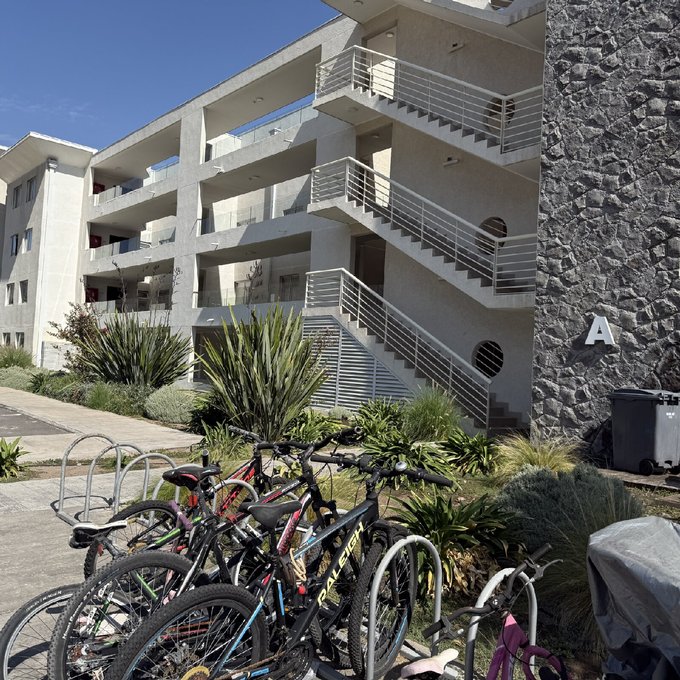 - Tres estacionamientos No techados a la salida del edificio (dos en tándem) de 12 m y 24 m, más 1 bodega de 12,16 m. Edificio con un ascensor y 15 estacionamientos de visitas.
