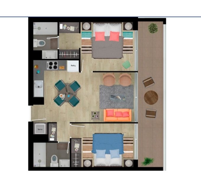 - Balcón de 14 mt que se ubica por todo el costado del departamento.