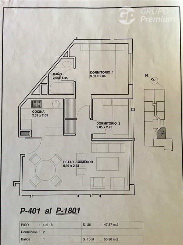 Departamento de 57 m2 en el piso 18, con 2 dormitorios, uno de ellos es una pieza pequeña apta para oficina, 1 baño, living, comedor y cocina americana equipada con horno eléctrico, campana y encimera a gas. Todas sus ventanas de termopanel. Se incluye estacionamiento y servicio de retiro de basura domiciliaria en el valor del arriendo. El estacionamiento se puede subarrendar (con condiciones).