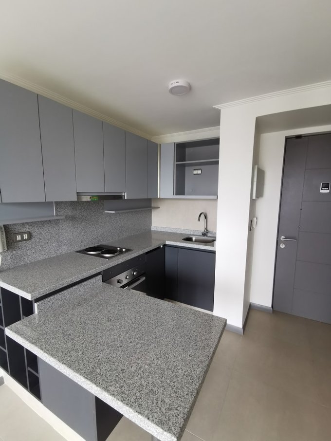 Living con cocina americana amoblada y equipada