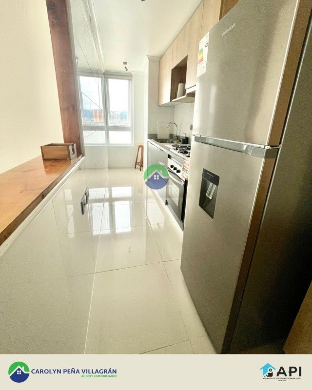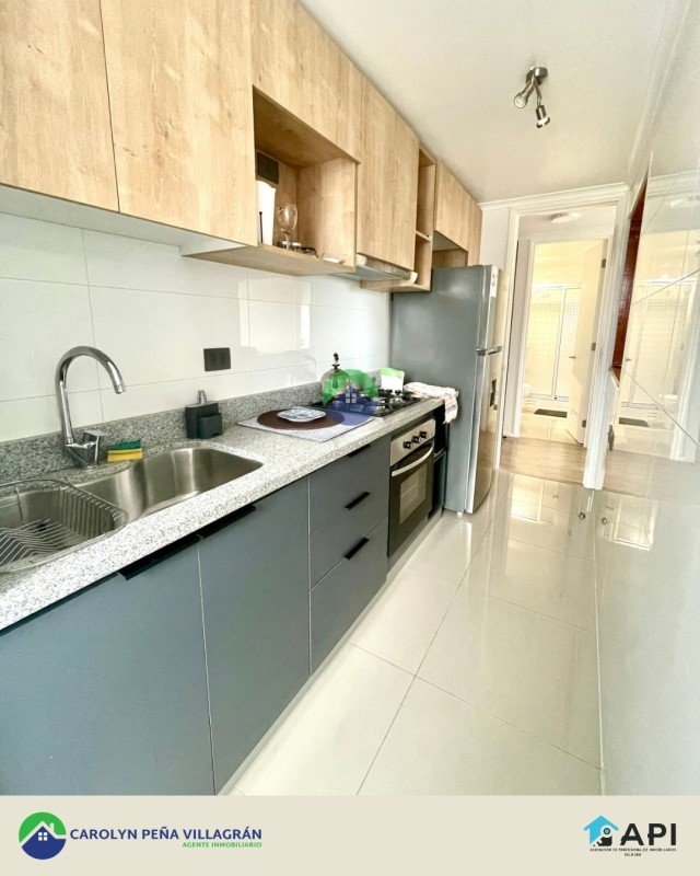 Consta de 2 dormitorios con baño en suite, balcón y cocina amoblada y equipada con horno, encimera, campana y refrigerador.