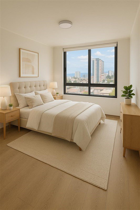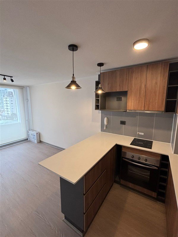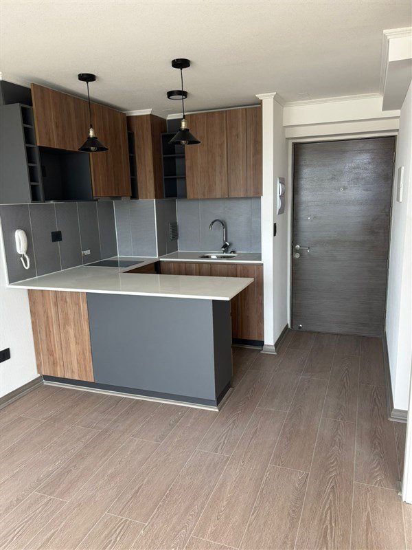 El departamento cuenta con un dormitorio amplio y luminoso, un baño completo, cocina americana y living comedor. Además, posee un balcón que brinda un espacio adicional para relajarse y disfrutar de la vista. El edificio dispone de conserjería las 24 horas, estacionamiento y áreas verdes para el esparcimiento de los residentes.