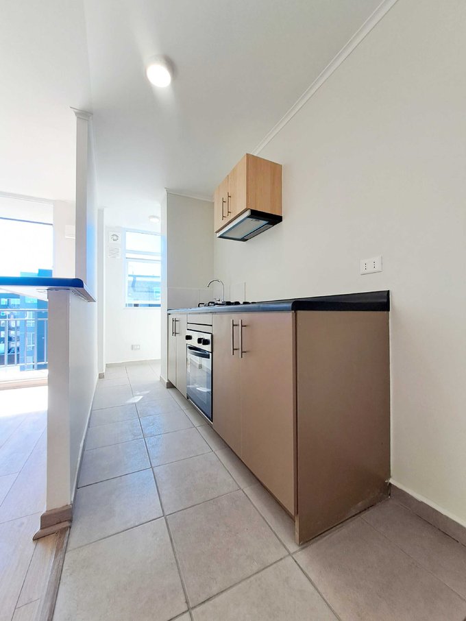 - Cocina americana, que cuenta con horno eléctrico, encimera y campana.