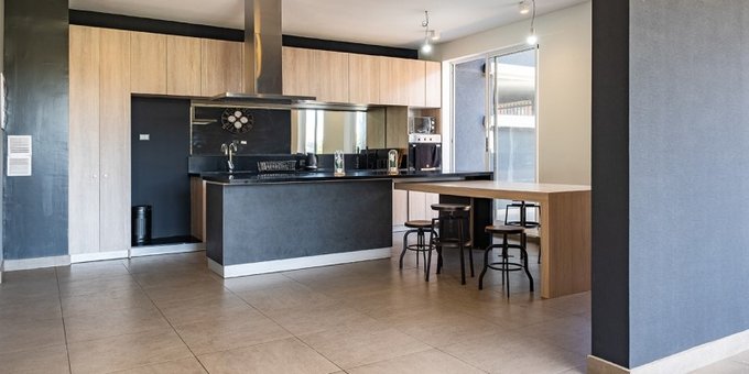 -Cocina amoblada, equipada con horno, encimera y campana.