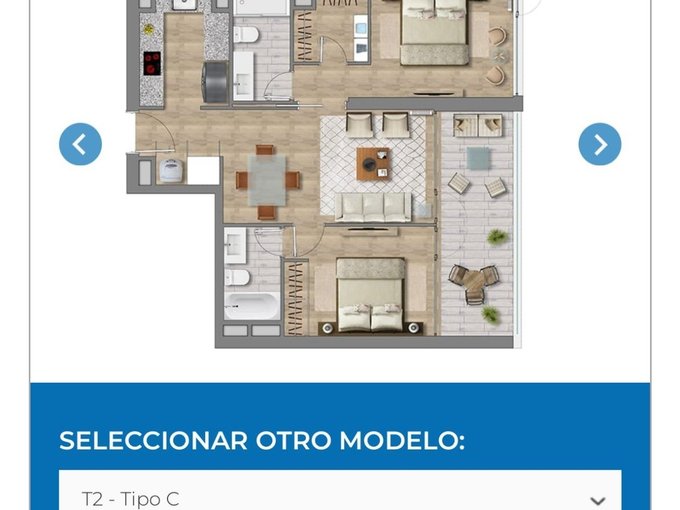 Cuenta con dos habitaciones y dos baños completos, (la principal en suite y con walking closet), living y comedor, amplia terraza cerrada, cocina equipada, con conexión a lavavajillas y lavadora, despensa. Vista oriente, sol de mañana. Incluye estacionamiento subterráneo.
