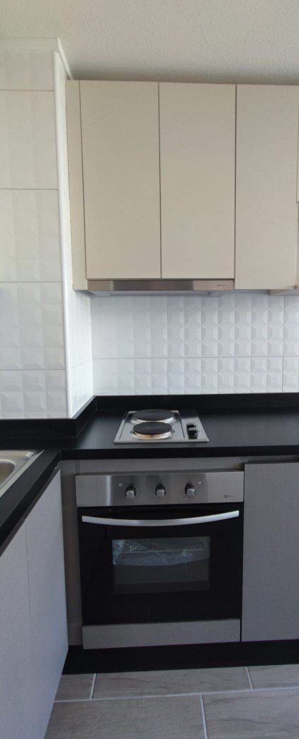 - Cocina equipada con encimera, horno y campana todo eléctrico. Muebles aéreos y de piso.