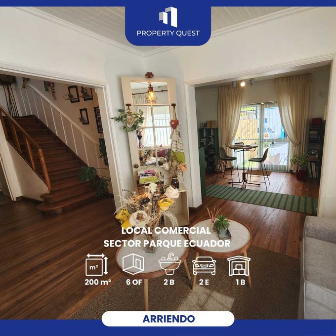 Ubicado frente al Parque Ecuador, este local cuenta con 200 m construidos distribuidos en dos pisos, con 6 oficinas, 1 showroom, 2 baños y 1 bodega.