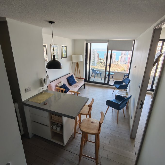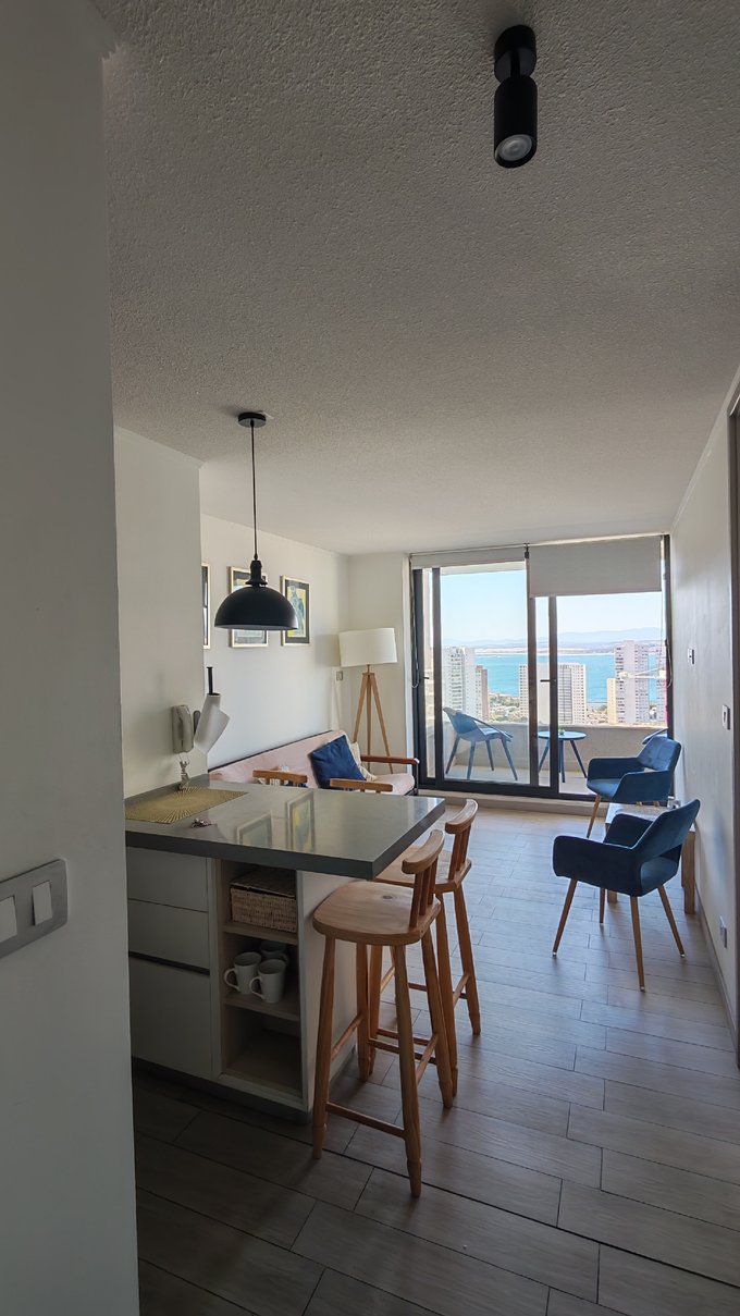 Excelente departamento con inmejorable ubicación en concón cuenta con todo lo necesario para poder habitar amoblado equipado completo cuenta con estacionamiento quincho piscina gimnasio hay lavanderías áreas verdes y conserjería cercano a supermercados y avenidas principal donde pasa locomoción