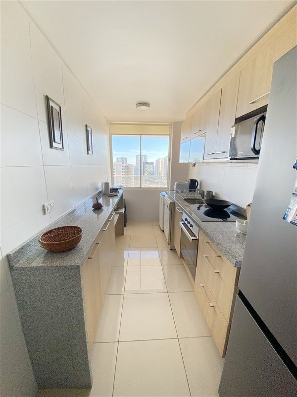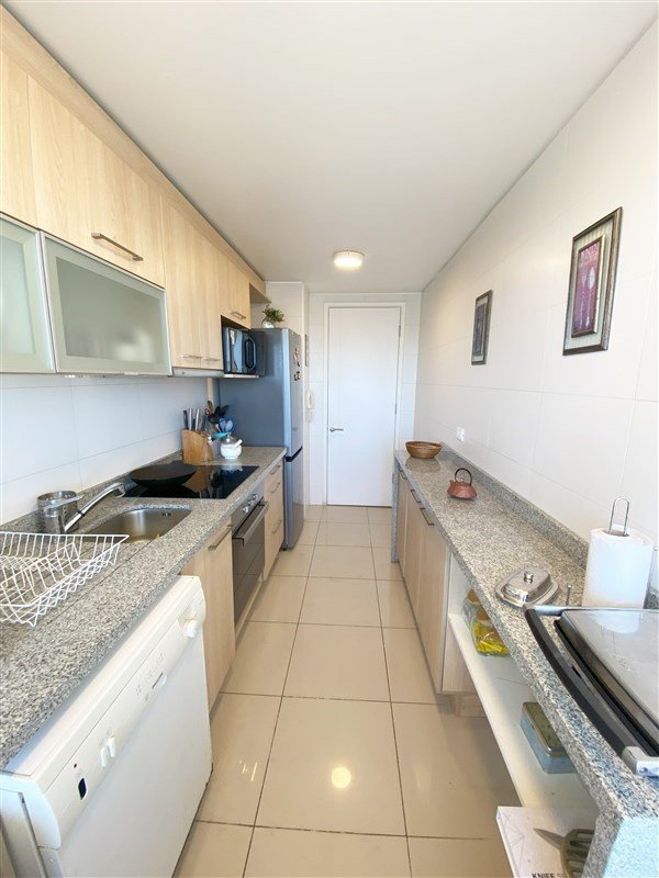 Cocina cerrada totalmente equipada: refrigerador, microondas, encimera eléctrica digital, campana extensible, horno eléctrico, lavavajillas y lavadora