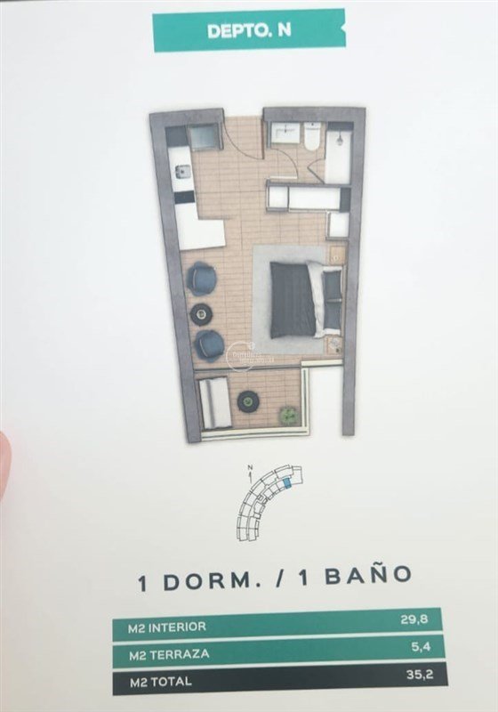 Cocina americana, baño completo, terraza, 1 estacionamiento y 1 bodega subterráneos.