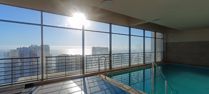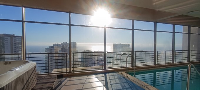 Arriendo Año corrido acogedor departamento Estilo Mariposa dos dormitorios dos baños estacionamiento y bodega en sector residencial Concon-Reñaca Gimnasio Piscina temporada Jacuzzi Salon de Reuniones