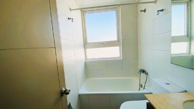 Cocina americana completa con encimera eléctrica, 2 amplios dormitorios con sus respectivos Closet y bella vista, un baño equipado completo con tina, tiene un espacio habilitado para la lavadora.
