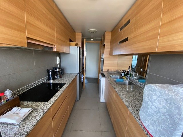 Este departamento tiene cocina tradicional con logia, living y comedor con salida a amplia terraza cerrada, 3 dormitorios y 2 baños completos (principal en suite), además incluye un estacionamiento y 1 bodega.
