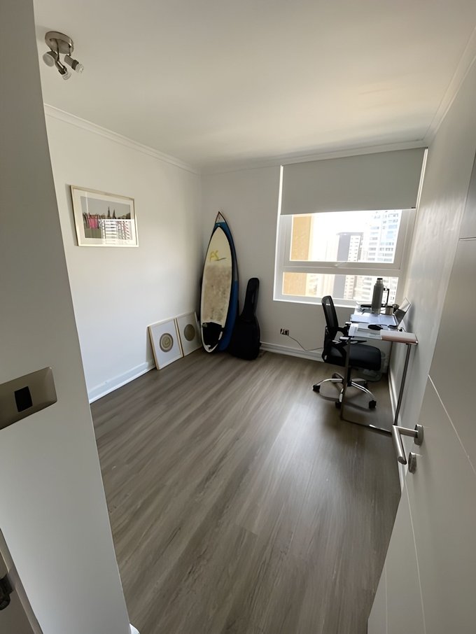 Recién remodelado, todo el departamento con piso flotante y ventanas con cortinas roller.