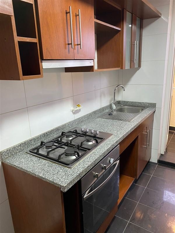 Cocina cerrada amoblada y equipada con logia.