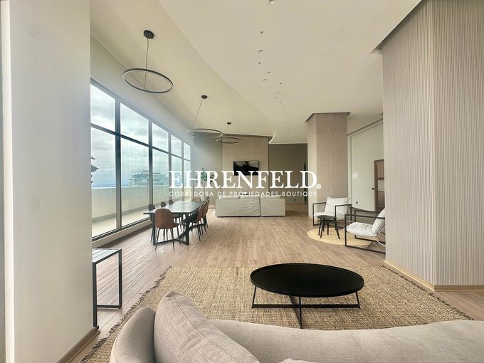 Moderno departamento con finas y elegantes terminaciones con amplia terraza con barandas de vidrio.