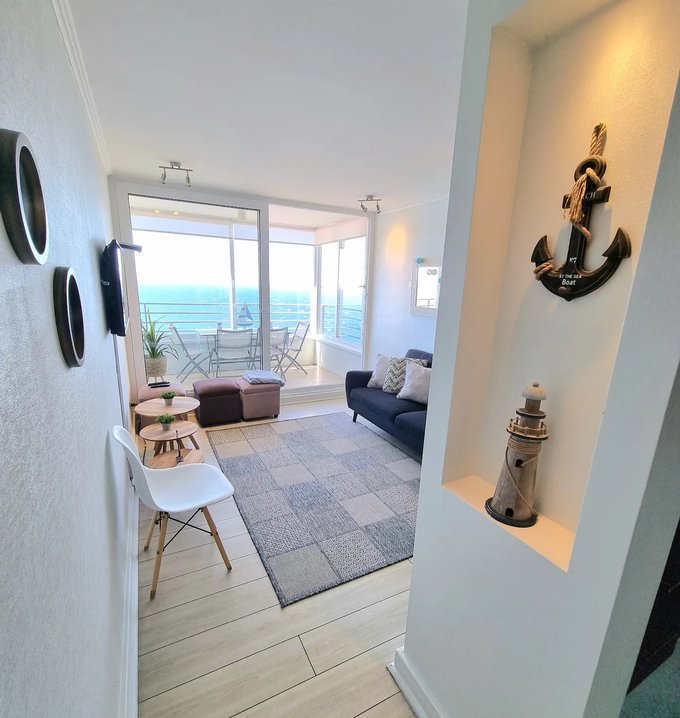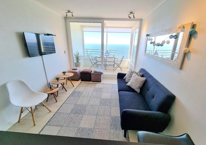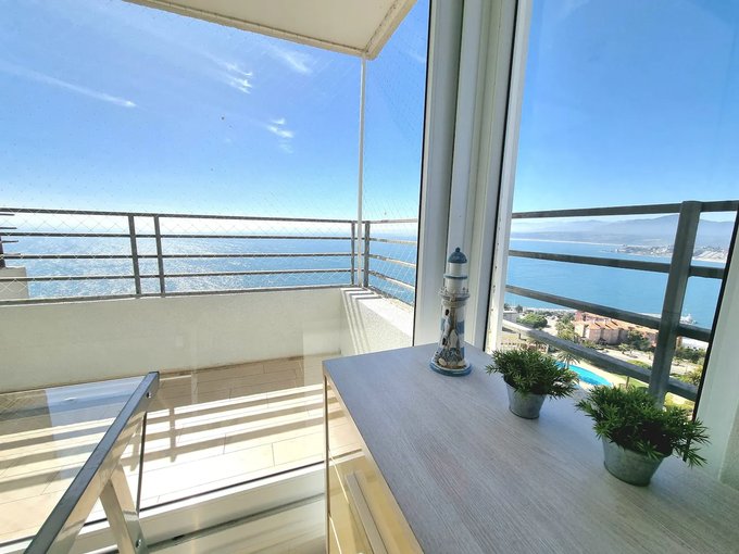 Departamento con espectacular vista al mar, completamente amoblado, ubicado en sector residencial de Costa de Montemar, Concón.