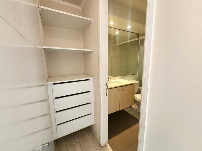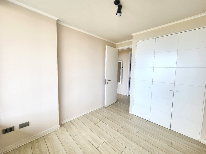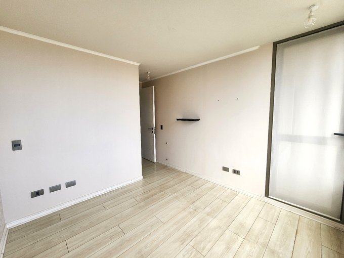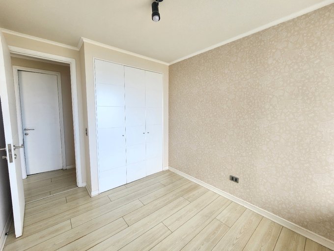 El departamento cuenta con 2 dormitorios con closet, 2 baños (uno en suite y el otro baño con espacio de conexión e instalación de lavadora), living y comedor, cocina americana equipada con encimera eléctrica, horno y campana eléctrica, terraza cerrada, además tiene un estacionamiento superficie y una bodega.